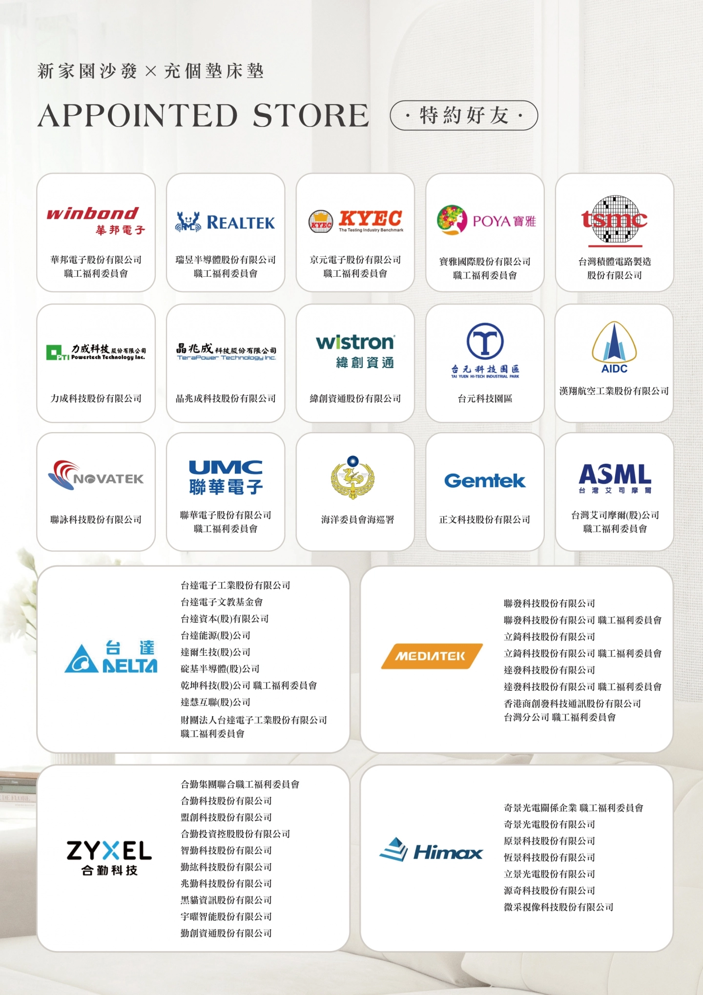 | 台灣艾司摩爾 (ASML) | 台灣艾司摩爾(股)公司 職工福利委員會 |