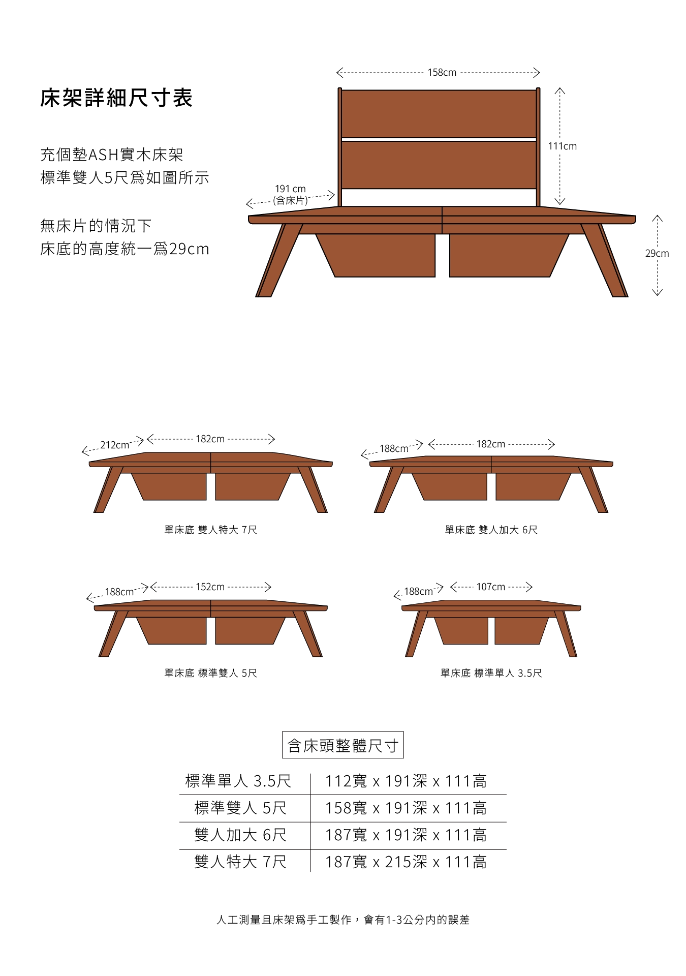 7尺特大床架組 寬187 深215 床頭片高111 床底高29(King size)