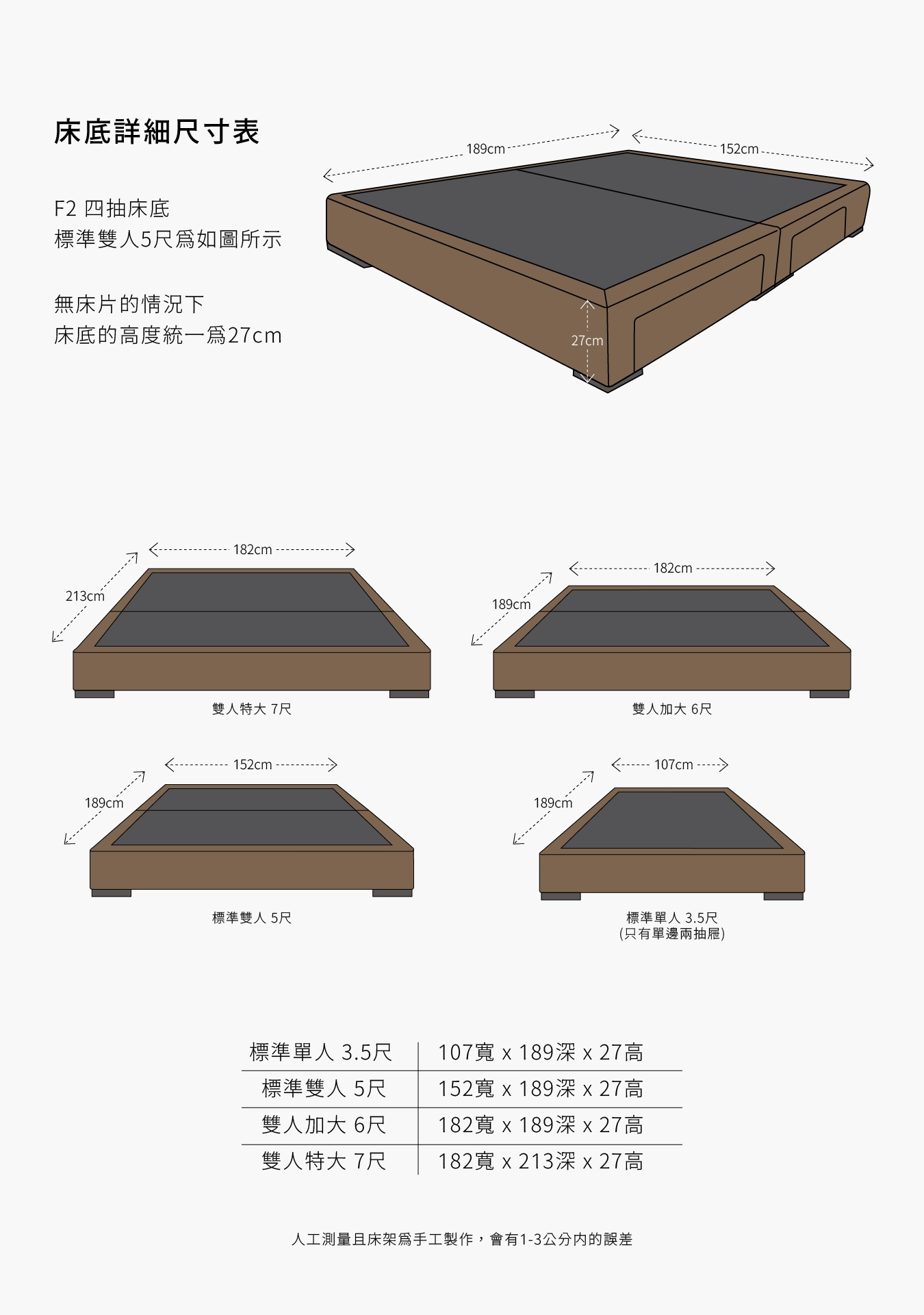 7尺特大床底 寬182 深213 高27 (King size)