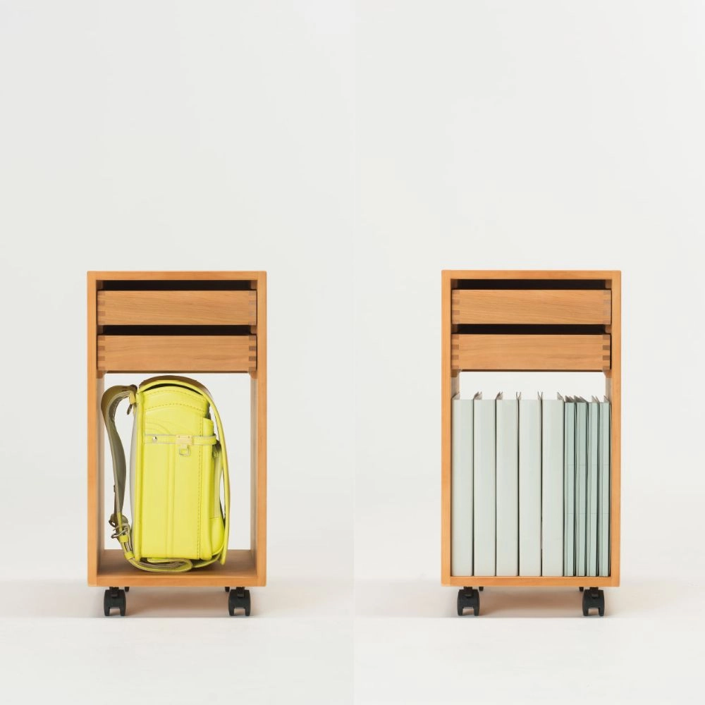 採用珍貴的北海道產「榿木」,以建築般的嚴謹結構,將收納與移動機能完美結合