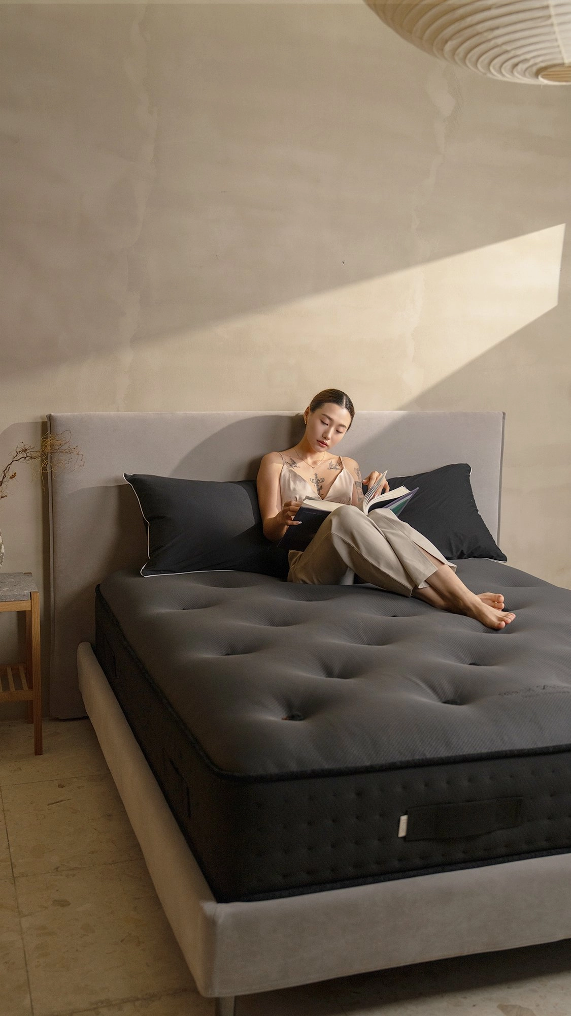 堅持職人手工縫製,摒棄傳統大量工業黏著劑。透過精湛的手工貫穿拉扣技術,將多層頂級內材與彈簧結構緊密結合。這不僅確保了床墊的結構穩固、不位移,更大幅提升了透氣性,讓床墊成為會呼吸的藝術品。