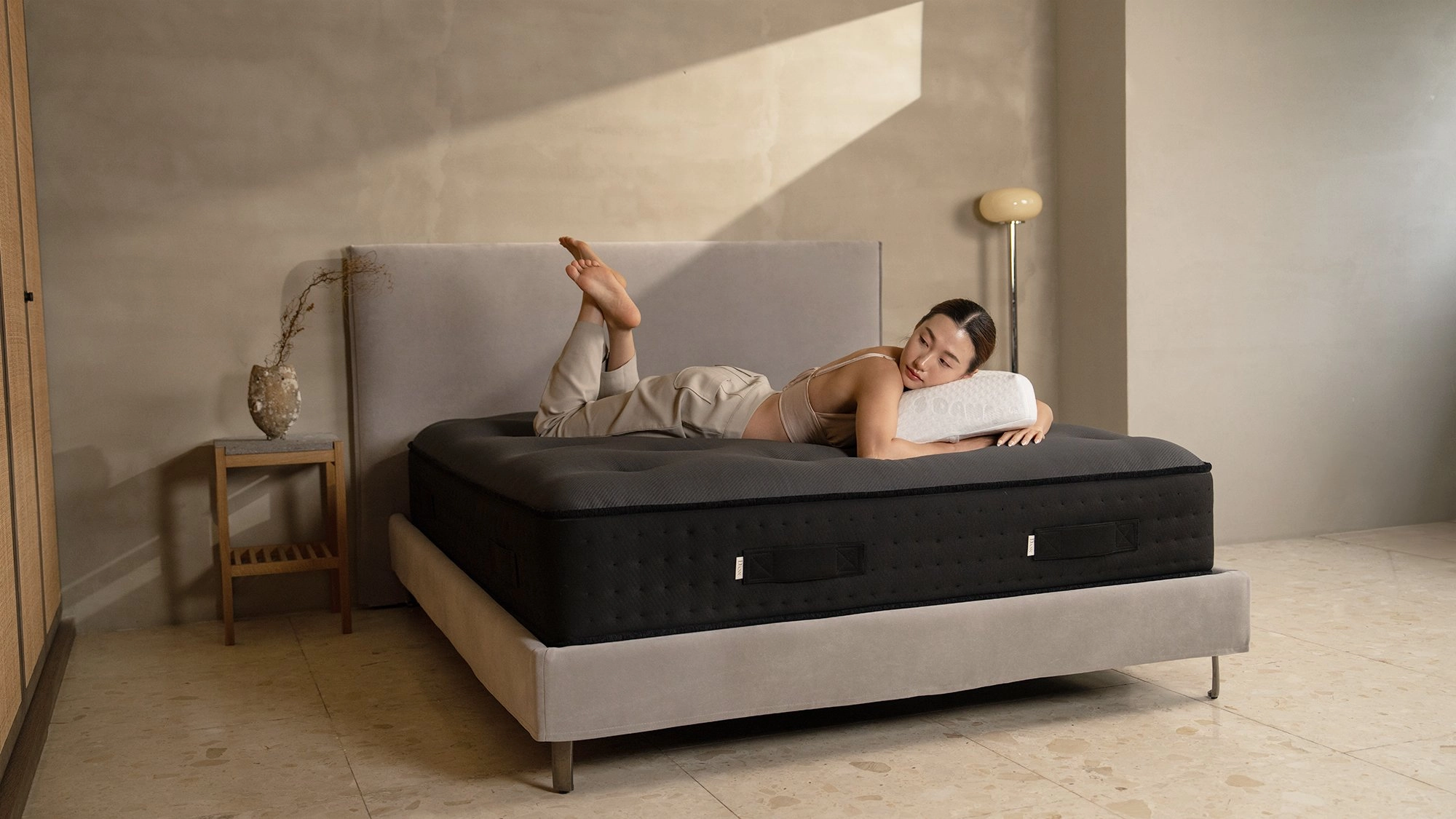 核心置入德國原裝 AGRO 小彈簧,提供極致細膩的動態緩衝。微型獨立筒能根據身體微小轉動精準回饋,與主支撐系統完美協作,細膩捕捉脊椎每一吋曲線,提供深不見底的柔韌支撐,讓翻身成為一種無感享受。